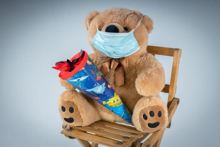 Und dann kam Corona und damit verbunden das Hygienekonzept: Großeltern durften nicht mit zur Einschulung. Selbst die kleine Schwester sollte lieber in die Kita und nicht mit im Schulgebäude anwesend sein. Bei den Eltern war natürlich Maskenpflicht angesagt.